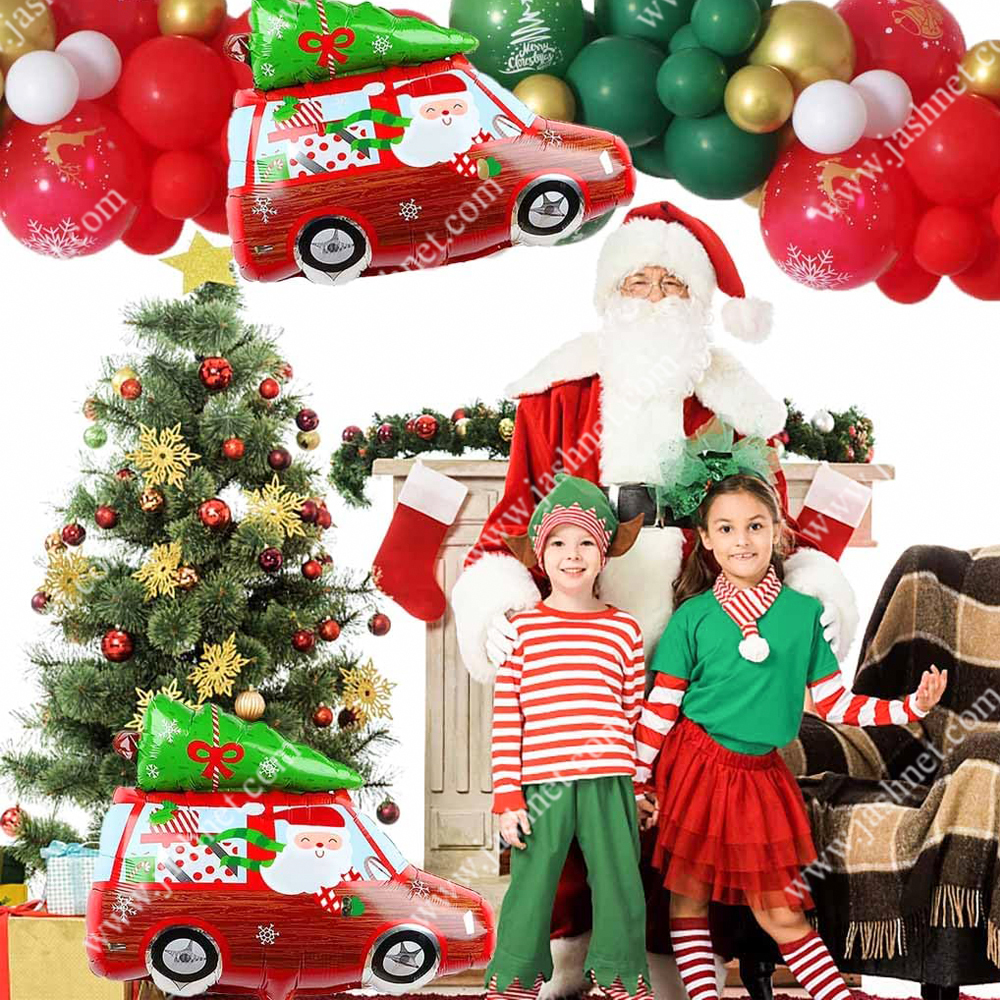 بادکنک فویلی ماشین بابانوئل – اندازه 64*68 سانتی متر – مناسب برای تزئینات جشن و مراسم – ساخت چین