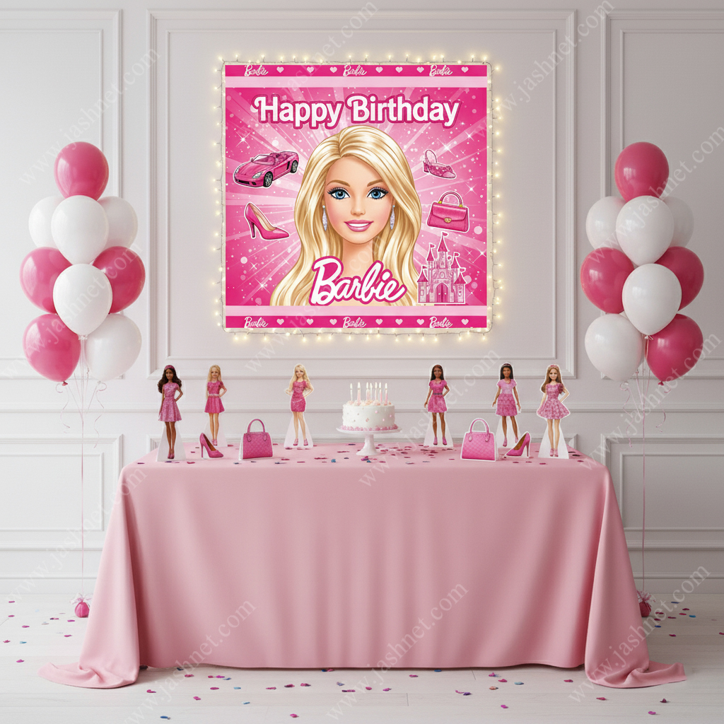 بنر تم باربی – جنس نانو بنر – اندازه 100*100 سانتی متر – 1 عدد – مناسب برای تزئینات جشن و مراسم تولد – تولید ایران