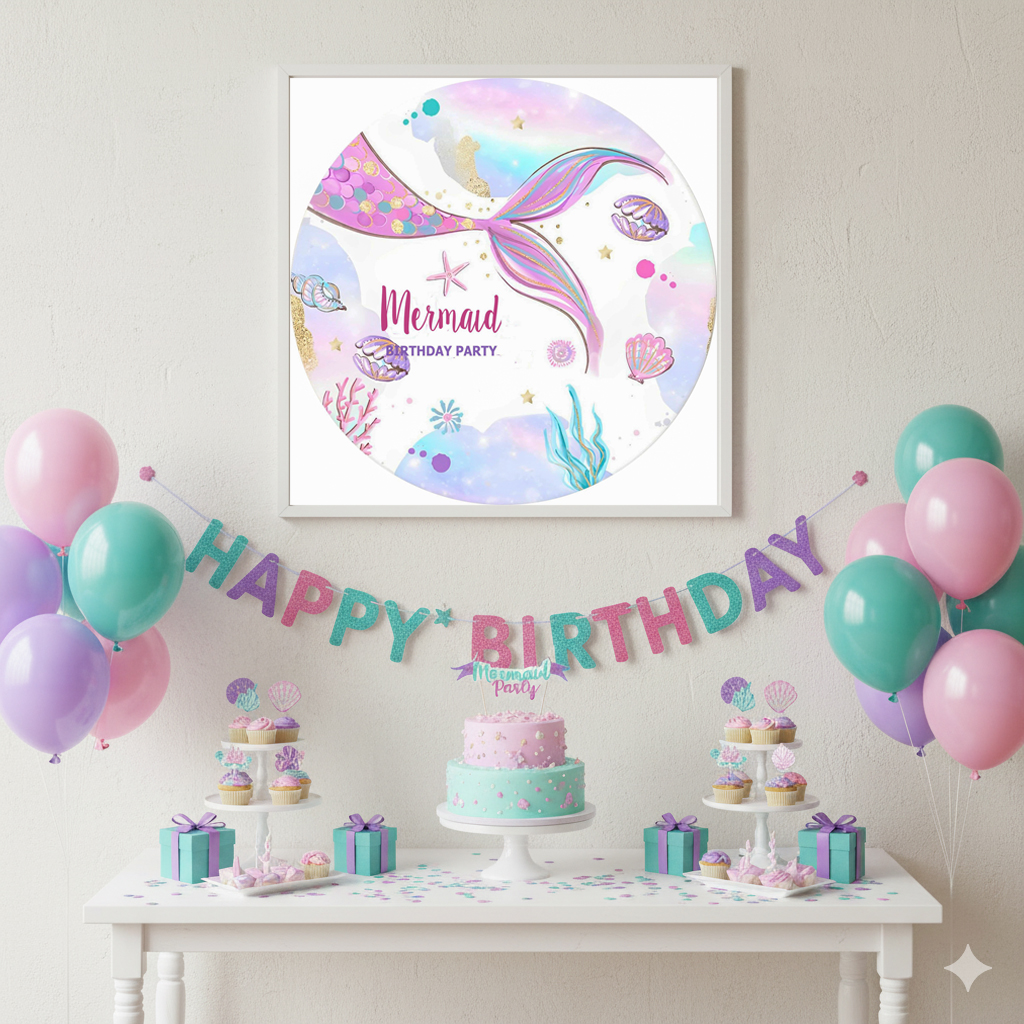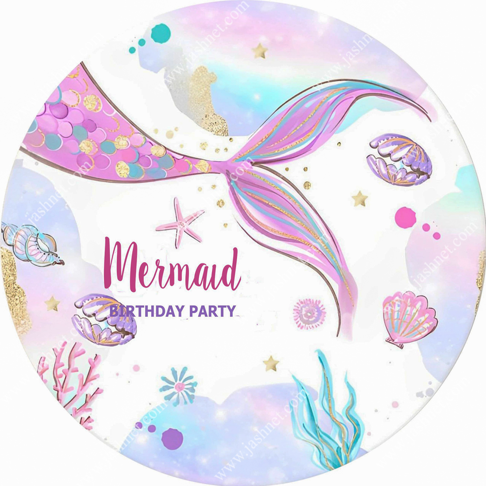 بنر گرد تم تولد پری دریایی از جنس نانو بنر – اندازه مربع 100*100 سانتی متر – 1 عدد – مناسب برای تزئینات جشن و مراسم – ساخت ایران