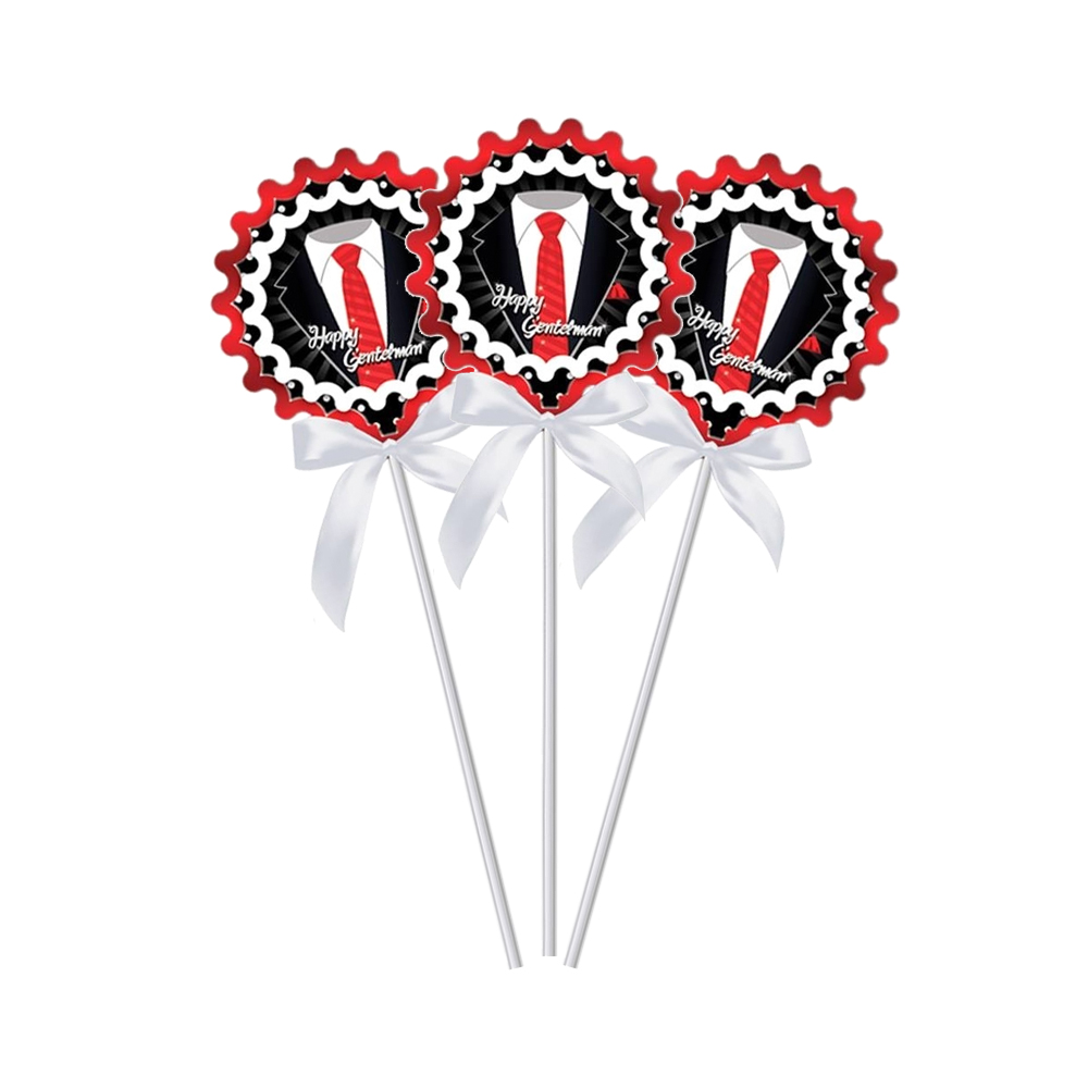 تاپر تم تولد جنتلمن ، شامل 6 عدد می باشد که اندازه هر یک از این تاپر ها حدود 25 سانتی متر است. از تاپر جنتلمن در جشن تولد بیشتر به عنوان یاد بود یا هدیه استفاده می شود ، اما اغلب مردم نیز در تزئین دکور مراسم نیز استفاده می کنند. لازم به ذکر است که جنس این محصول از پلی استایرین و مقوا گلاسه است و دارای درجه کیفی بالا می باشد. لازم به ذکر است که از این محصول می توانید برای تزئینات کیک نیز استفاده کنید.