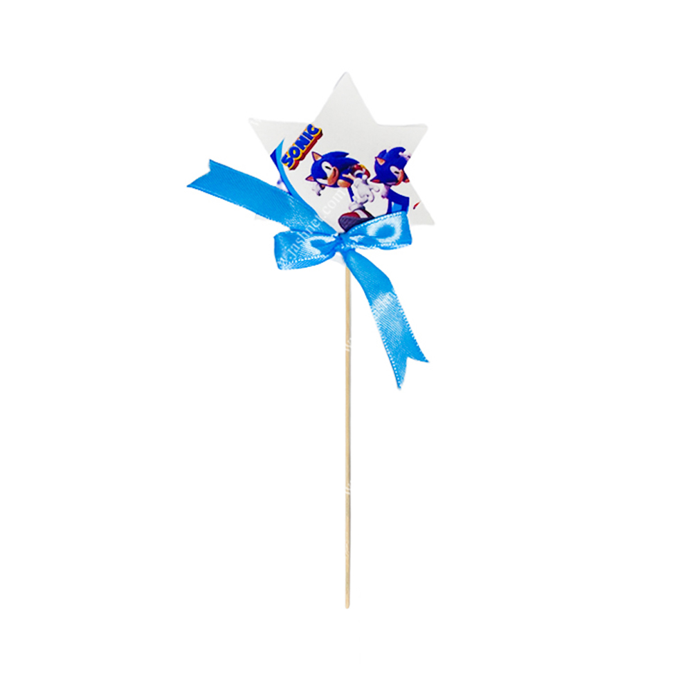 تاپر تم تولد سونیک از جنس مقوا گلاسه – اندازه حدود 25 سانتی متر – تعداد 6 عدد – مناسب برای تزئینات جشن – ساخت ایران