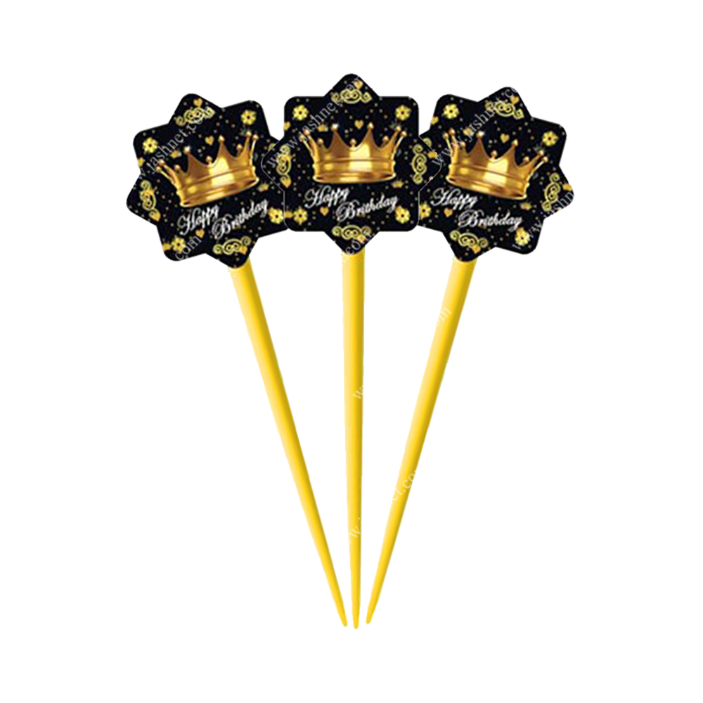 خلال تم تولد تاج طلایی ، یکی از محصولات پرکاربرد در مراسمات می باشد. هر یک از خلال ها به اندازه 8 سانتی متر است. جنس این خلال بن تن از مقوا و چوب خلال است که با مواد کاملا بهداشتی و با کیفیت تهیه می شود . از این محصول جهت تزئینات میوه ، دسر ، کیک و … استفاده می کنند . این محصول 10 عددی است. لازم به ذکر است که از این محصول میتوانید برای تزئینات کیک نیز استفاده کنید.