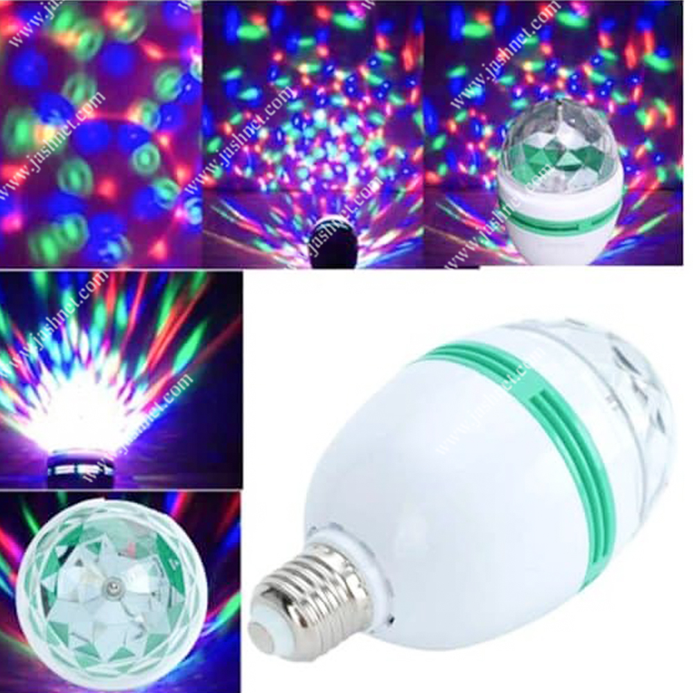 لامپ گردان دیسکو 3 وات یا چراغ دیسکویی ، در ابعاد 8*13 سانتی متر می باشد. این محصول به این صورت می باشد که به سر پیچ لامپ متصل می شود و رقص نور پخش می شود.جنس محصول پلاستیکی نشکن می باشد و مناسب جهت استفاده در منزل ، مجالس ، مهمانی ها و .. می باشد. این محصول دارای 3 وات توان و محیط 40 متری را نور افشانی می کند.