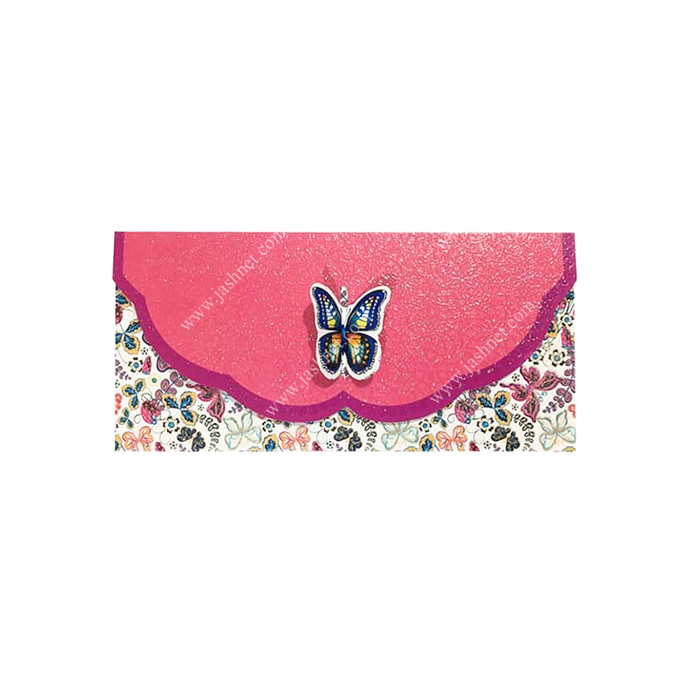 این محصول طرح برجسته دارد. همچنین رنگ های اکلیلی بکار رفته در آن جلوه خاصی به پاکت پول داده است. پاکت در ابعاد 19 سانتی متر طول و 9 سانتی متر عرض می باشد که مناسب برای قرار گرفتن پول نقد ، تراول چک و یا سکه در درون آن می باشد.