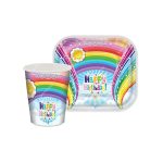 پیش دستی و لیوان تم تولد رنگین کمان از جنس مقوا – تعداد 10 عدد لیوان ، 10 عدد پیش دستی – اندازه لیوان 200 سی سی ، پیش دستی 17*19 سانتی متر – مناسب پذیرایی مراسم – ساخت ایران