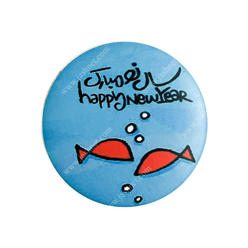 رنگ ضمینه این پیکسل آبی و طرح روی آن ماهی قرمز و عبارت ” Happy New Year ” و ” سال نو مبارک ” است.