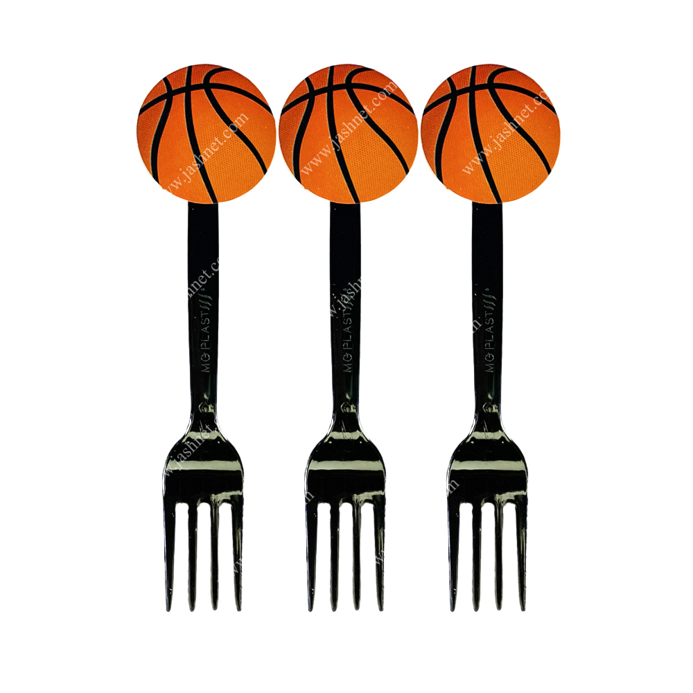 چنگال تم تولد بسکتبال ، یکی از اقلام اصلی پذیرایی می باشد که جهت سرو کیک ، میوه ، سالاد و … استفاده می شود. اندازه چنگال بسکتبال حدود 17 سانتی متر است.