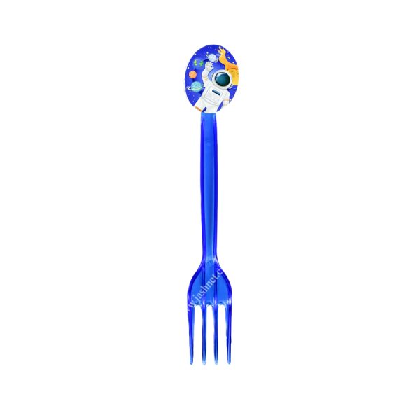 چنگال تم تولد فضانورد ، یکی از اقلام اصلی پذیرایی می باشد که جهت سرو کیک ، میوه ، سالاد و … استفاده می شود. اندازه چنگال فضانورد حدود 17 سانتی متر است.