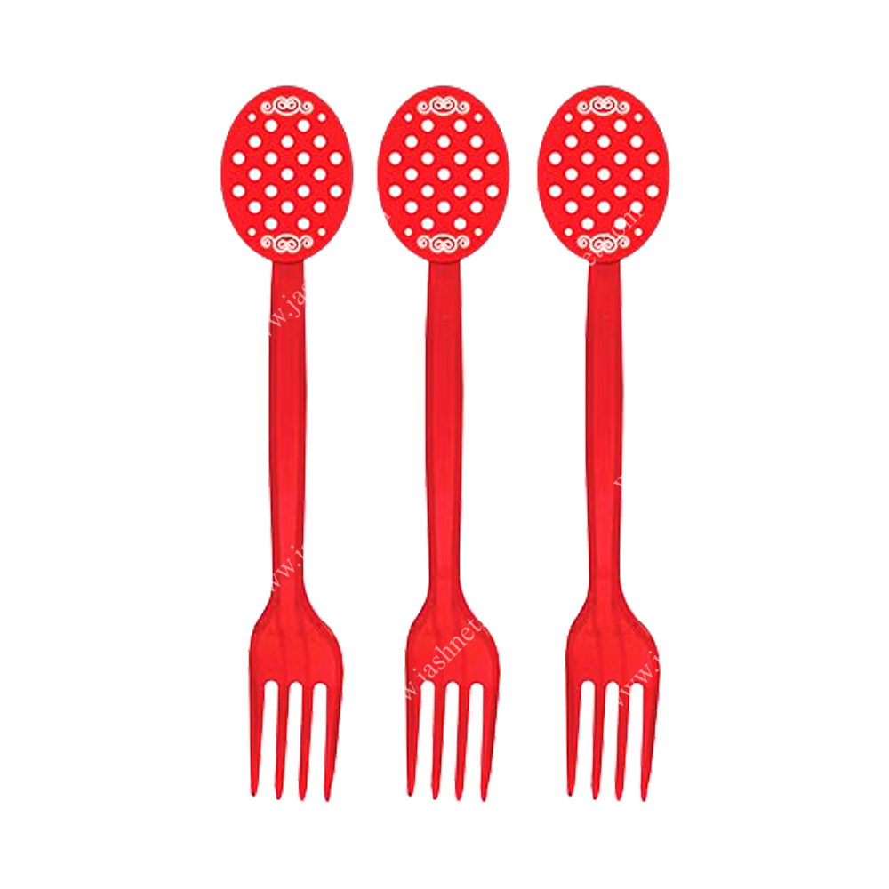 چنگال تم تولد قرمز خال سفید از جنس پلی استایرین ( کریستال ) – تعداد 10 عدد – اندازه حدود 17 سانتی متر – مناسب برای پذیرایی جشن – ساخت ایران