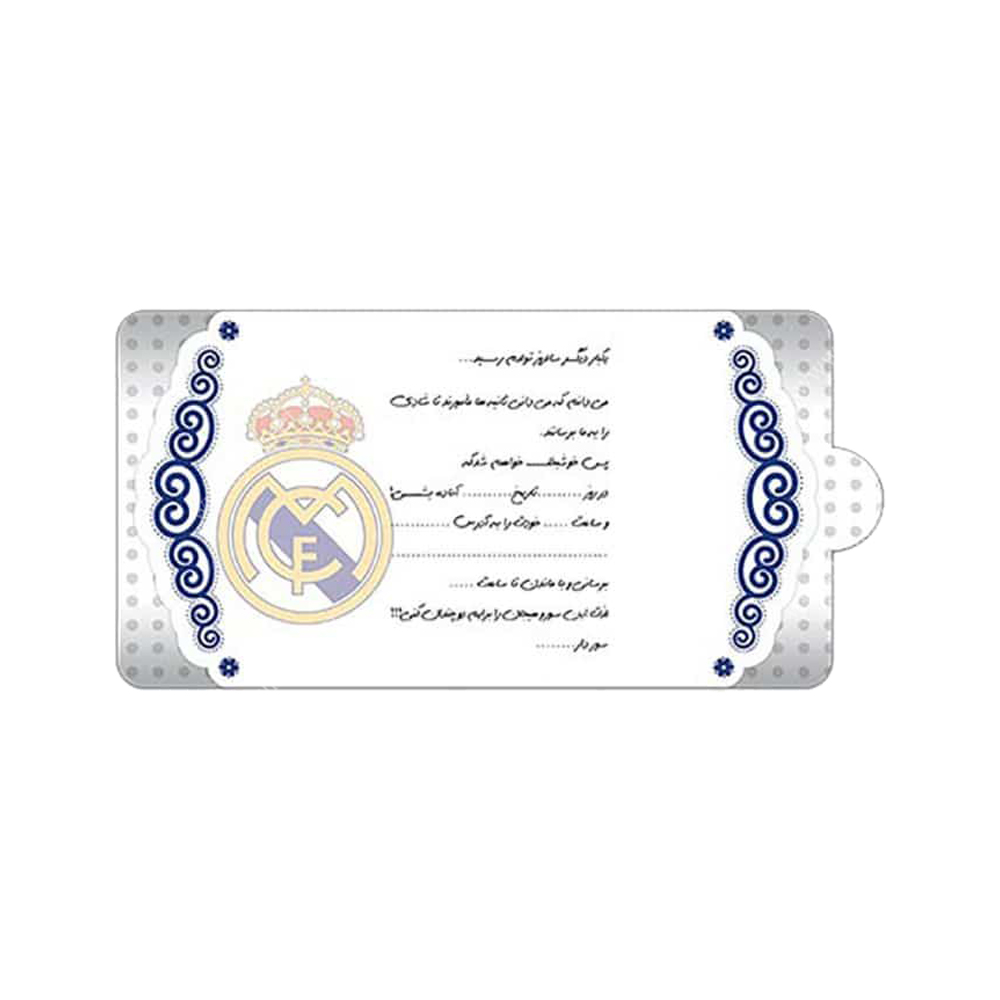 کارت دعوت تم تولد رئال مادرید جنس مقوا گلاسه – اندازه 11*7.5 سانتی متر – تعداد 10 عدد – مناسب برای جشن و مراسم – ساخت ایران